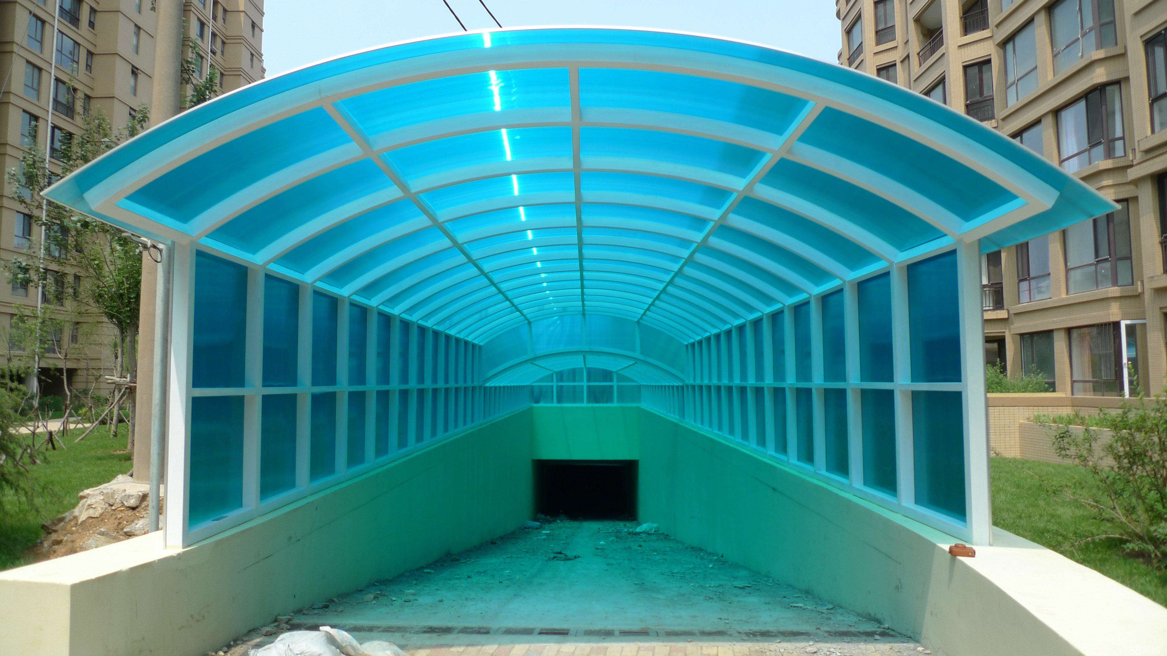 耐力板雨棚采用抗高強(qiáng)度沖擊的聚碳酸酯材料,抗沖擊性能強(qiáng),強(qiáng)度是玻璃的200倍。頂棚涂有防紫外線共擠層(UV涂成),有效遮擋紫外線,而且在陽(yáng)光下暴曬下不會(huì)變黃和霉化。