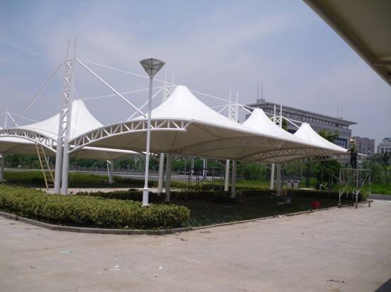 三,膜結(jié)構(gòu)遮陽棚的新穎美觀,造型自如,是其他材料結(jié)構(gòu)的遮陽棚無法比擬的,它本身就是一道漂亮的景觀,又能為游客遮陽避雨。